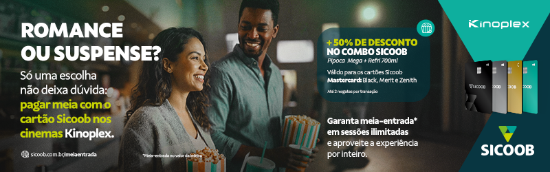 Você paga com o cartão de crédito SICOOB e o seu ingresso tipo inteira sai pela metade do preço. E mais, clientes SICOOB cartões Black/Zenith têm 50% desconto na compra do Mega Sicoob (pipoca mega + refrigerante 700ml) Confira as regras da promoção e os cinemas participantes.
