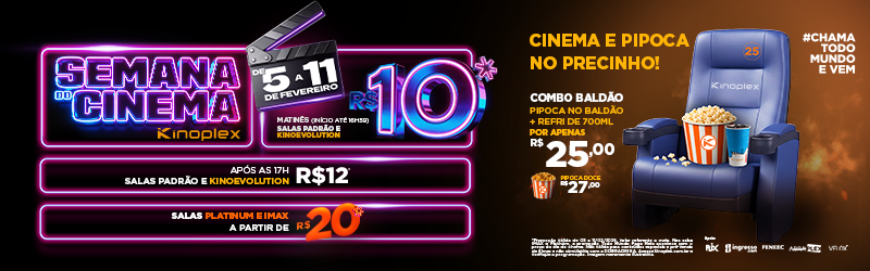 Uma semana com descontos imperdíveis para você! De 5 a 11 de fevereiro, você só paga R$10,00* nas sessões até 16h59 e R$12,00* nas iniciadas a partir de 17h (todo mundo paga meia-entrada promocional) nas salas Padrão e KinoEvolution. E, nas salas IMAX e Platinum, tem promoção Todo Mundo Paga Meia.